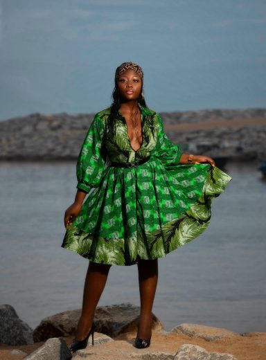 Élégante et moderne, la robe Aby est confectionnée dans un tissu 100% coton, doux et respirant. Sa coupe fluide met en valeur toutes les silhouettes, tandis que son imprimé aux tons verts éclatants apporte une touche de fraîcheur et de vitalité.